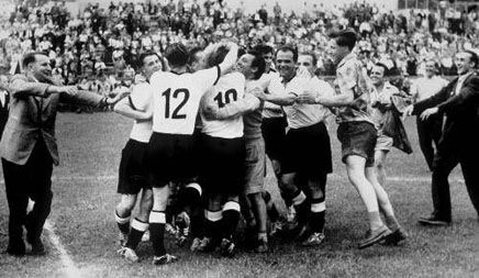 从0比2到3比2、从3比8到3比2,西德队不可思议的翻身而起打倒了匈牙利巨人,创造了世界杯历史上最神奇的决赛。这场被载入史册的决赛至今被人津津乐道,有人将其称之为“伯尔尼奇迹”。