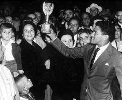 由于世界大战的影响,世界杯中断了12年,但终于在1950年重新举办。这届巴西世界杯还争取到了英联邦四个足协的加入。为了这届世界杯,巴西人还特别修建了可以容纳20万人的世界第一大球场:马拉卡纳球场。但在本届世界杯决赛中,巴西主场1-2输给了乌拉圭痛失冠军。乌拉圭人斯基亚菲诺当选最佳球员,巴西人阿德米尔打进8球成为最佳射手。