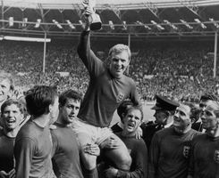 1966年,世界杯回到了现代足球的发源地英国,英格兰举办了第8届世界杯。比赛前,雷米特杯展出时的失窃让不少人感到紧张,幸好开赛前顺利找到了奖杯。本届比赛英格兰国家队凭借创造性的442攻守平衡阵型,一路过关斩将夺冠,决赛中4-2战胜联邦德国还留下了经典的“门线悬案”。带领球队夺冠的英格兰球星查尔顿当选最佳球员,葡萄牙“黑豹”尤西比奥打进9球成为最佳射手。