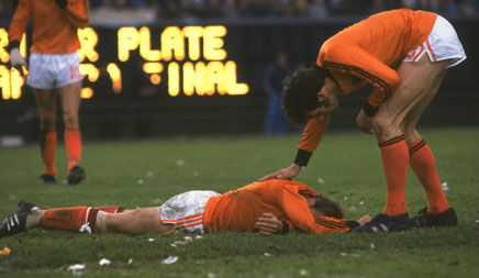 6月25日在河床体育场,决赛两队都大打攻势足球,双方门前都是险情不断,场面异常激烈惊险。最终在这场激烈的较量中,阿根廷3-1击败荷兰。