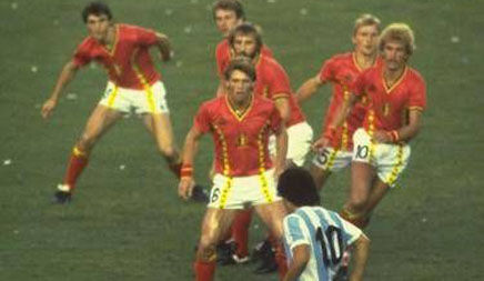 本届杯赛,在南美国内大放异彩的马拉多纳横空出世,他率领阿根廷的也被人们看好,可惜22岁的马拉多纳最终以一张红牌告别了西班牙。