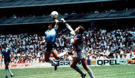 对于“上帝之手”进球,但马拉多纳却说:“我不过用智慧骗过了裁判而已,这也是对英格兰人入侵我们国家的惩罚”。