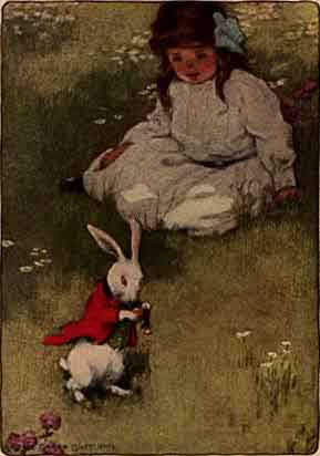 So she was considering in her own mind (as well as she could, for the hot day made her feel very sleepy and stupid), whether the pleasure of making a daisy-chain would be worth the trouble of getting up and picking the daisies, when suddenly a White Rabbit with pink eyes ran close by her.