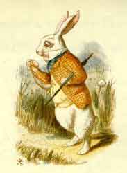 There was nothing so VERY remarkable in that; nor did Alice think it so VERY much out of the way to hear the Rabbit say to itself, `Oh dear! Oh dear! I shall be late!' ..(when she thought it over afterwards, it occurred to her that she ought to have wondered at this, but at the time it all seemed quite natural).