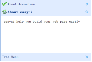 经由标记创建 accordion, 添加 'easyui-accordion' 类到 <div/> 标记。
