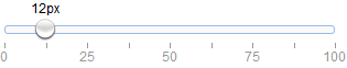 1. <input class="easyui-slider" name="font-size" value="12" showTip="true" rule="[0,'|',25,'|',50,'|',75,'|',100]" style="width:300px">