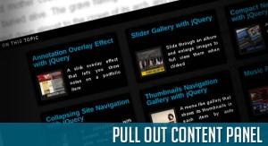 In this tutorial we will create a content panel that slides out at a predefined scroll position. It will reveal a teaser with related content and it can be expanded to full page size to show more. A custom slider allows to scroll through many items in the panel.