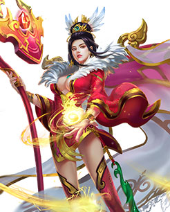 东吴神皇孙权之母,凤骨龙姿,皓齿峨眉,她手握如意法杖,身披金凤衣,法力无边,可颠倒乾坤。她用意念创造的琉璃神光法球,能在敌军之中来去弹射,被击中者四肢无力,望尘奔北;当她周身环绕七彩光辉法球时,祥云笼罩大地,为友军治疗伤口,使战场彼竭我盈,旗开得胜;神奇的天山玉如意还可召唤万丈神光,灼热之光强烈炙烫敌军,更犹如万把利剑穿心而过,无人可挡。神后乃天山瑶林女神,她教子有方,落落大方,深受神族人民的爱戴,是万流景仰的一代国母。