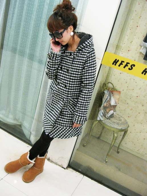 粉色,充满甜美淑女气息的蝴蝶结短外套,九分袖韩风设计 适合优雅白领穿着,小圆领大包扣,蝴蝶结造型的领口,映衬着蕾丝内搭的华美~ 无不透着精致小女人味道~~ 同款黑色,更显气质出众 黑色外套搭配一件稍长的玫红色毛衫、隐约露出可爱的小蝴蝶结图案, 千鸟格短裙、黑色丝袜……性感OL由你打造!