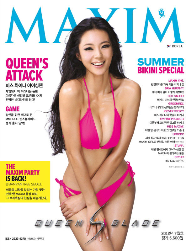 据悉,韩国出品的成人网游《女王之刃》代言人,内地超模艾尚真被选为韩国娱乐杂志《MAXIM(箴言)》的7月刊封面女郎。为了参与《女王之刃》的宣传活动于今年五月访韩的艾尚真,在参与游戏宣传活动之余还参与了《MAXIM》杂志的照片拍摄。