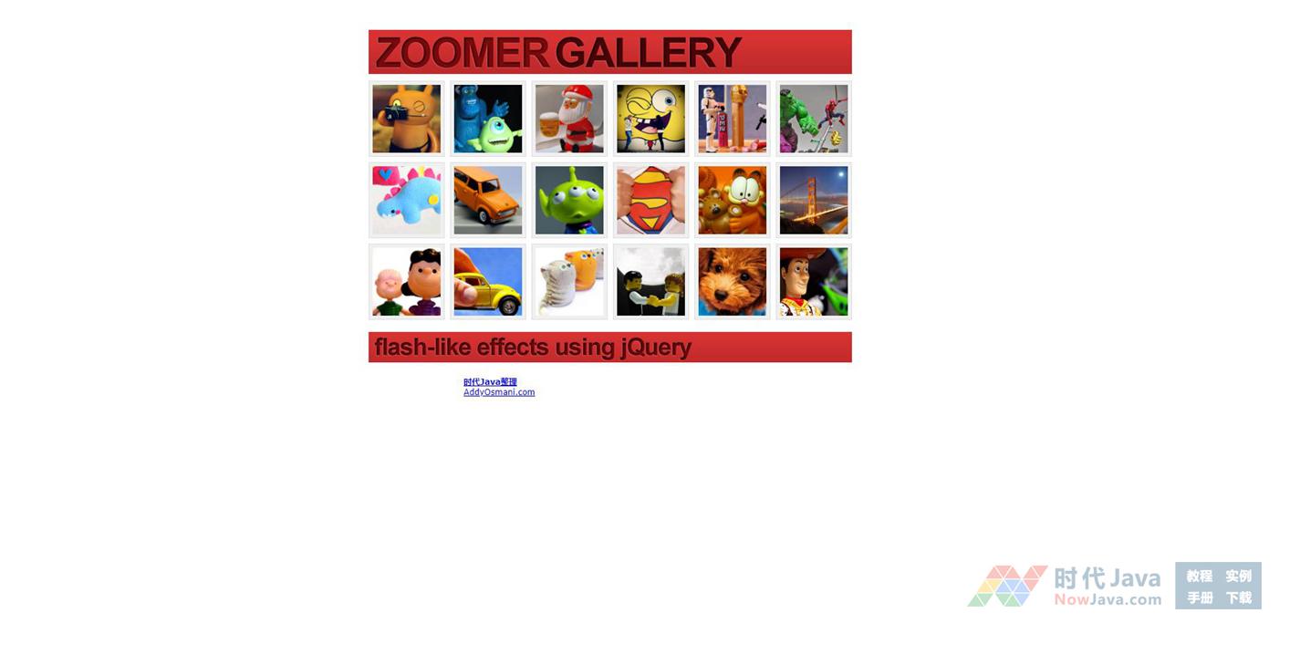 jQuery实现鼠标经过图片放大并显示标题特效代码