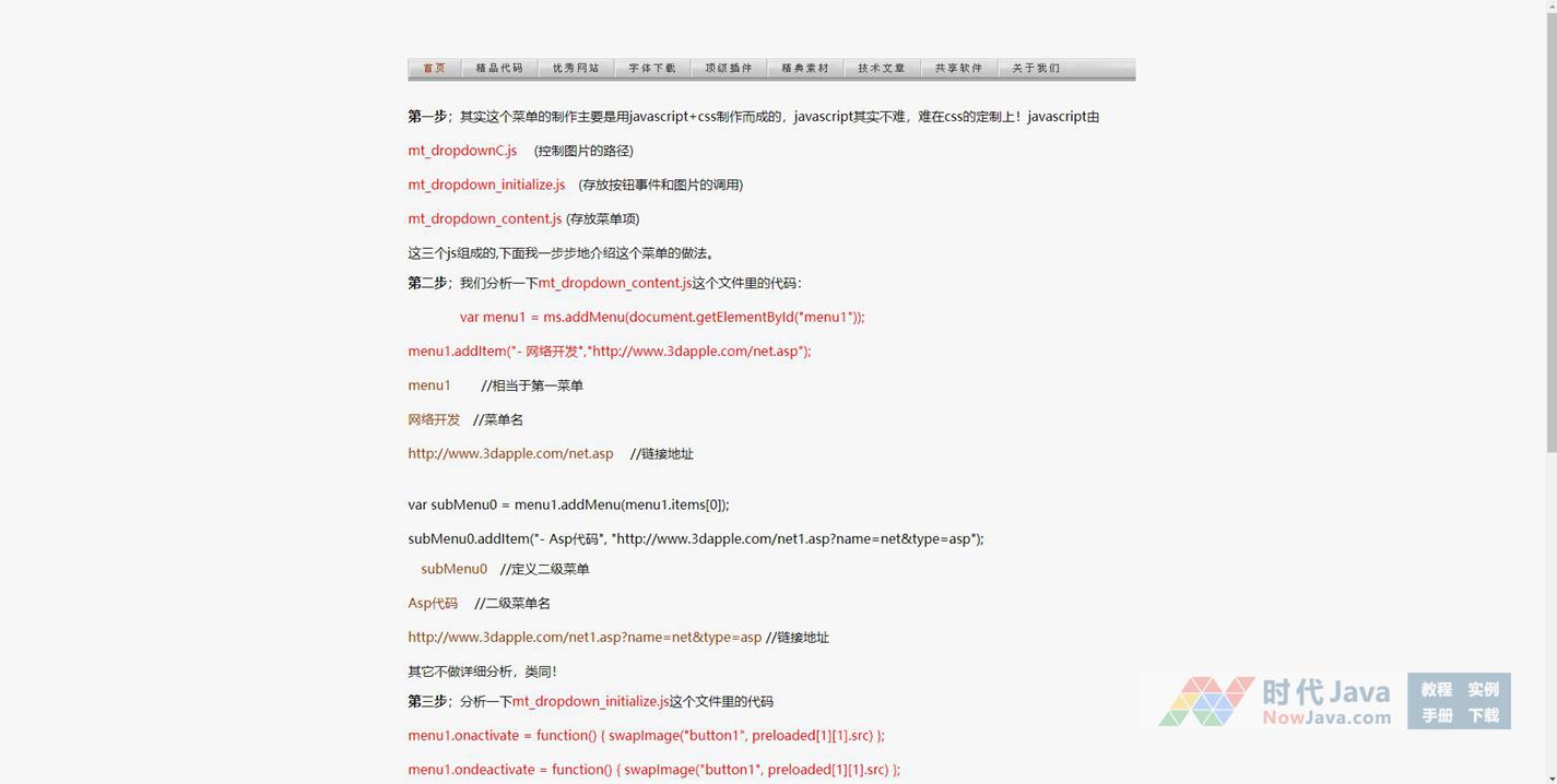 第一步;其实这个菜单的制作主要是用javascript+css制作而成的,javascript其实不难,难在css的定制上!javascript由