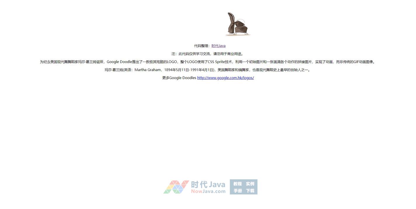为纪念美国现代舞舞蹈家玛莎·葛兰姆诞辰,Google Doodle推出了一款极其炫酷的LOGO,整个LOGO使用了CSS Sprite技术,利用一个初始图片和一张画满各个动作的拼接图片,实现了动画,而非传统的GIF动画图像。