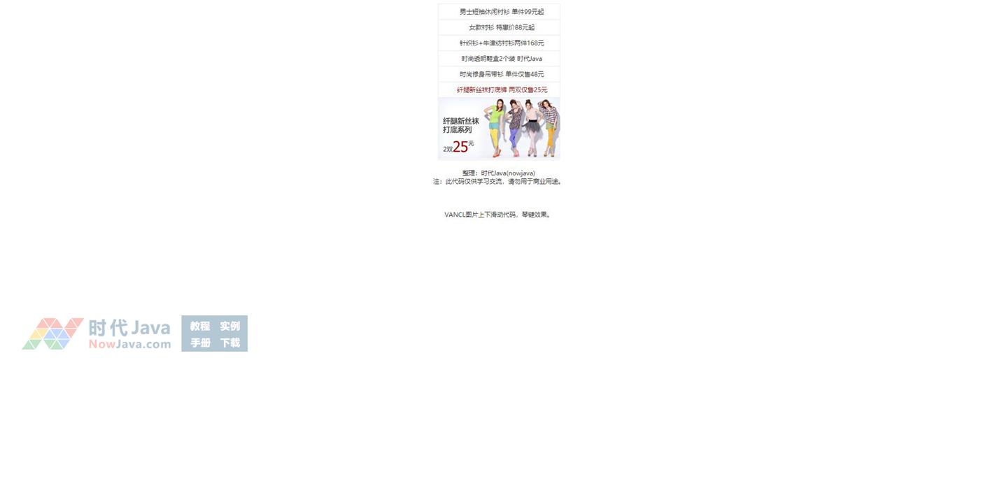 凡客网图片上下滑动代码,琴键效果