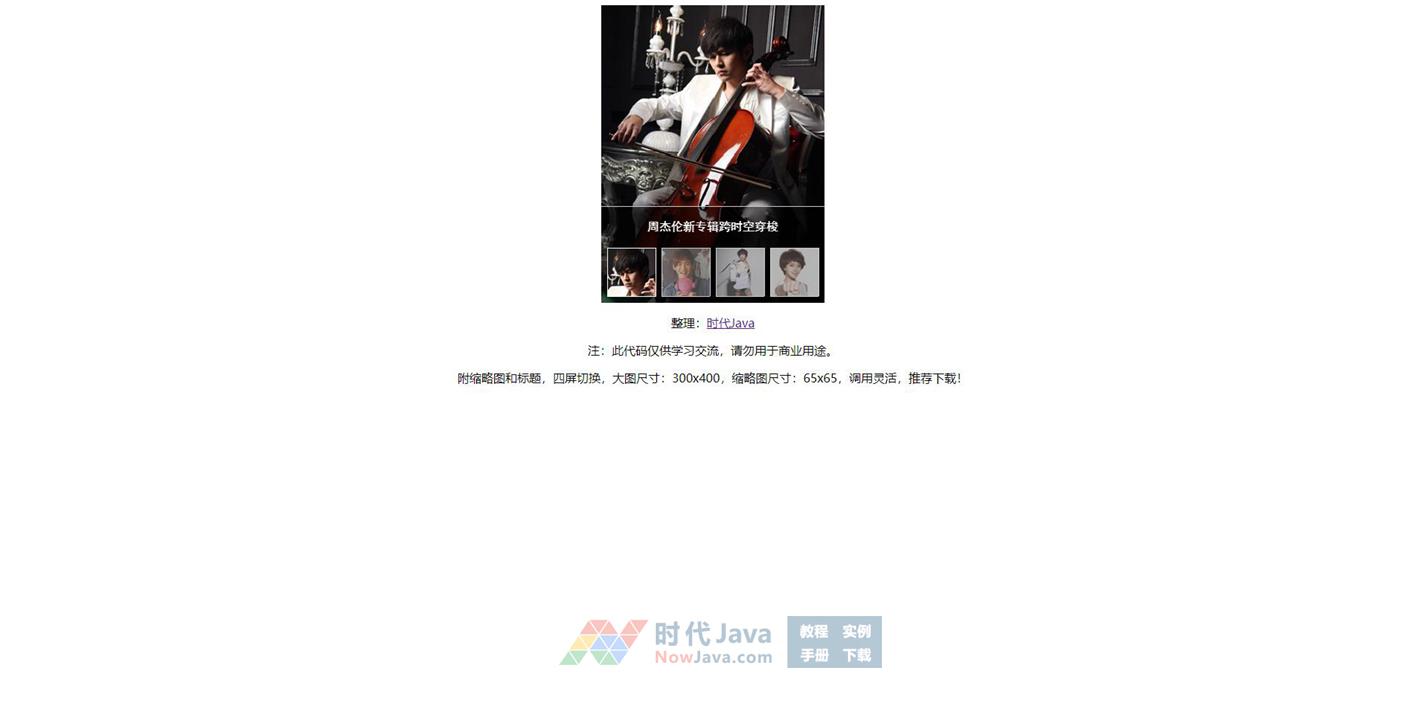 附缩略图和标题,四屏切换,大图尺寸:300x400,缩略图尺寸:65x65
