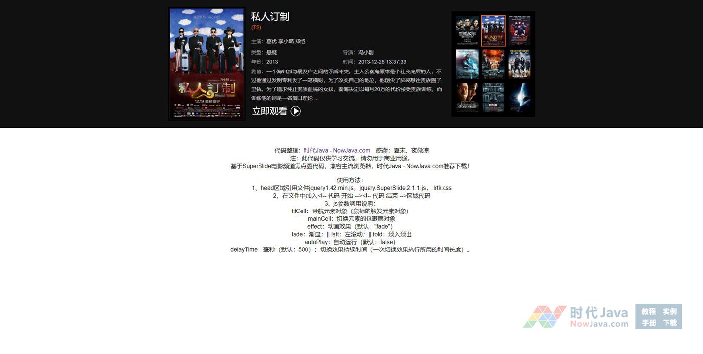 基于SuperSlide电影频道焦点图代码,兼容主流浏览器,推荐下载!