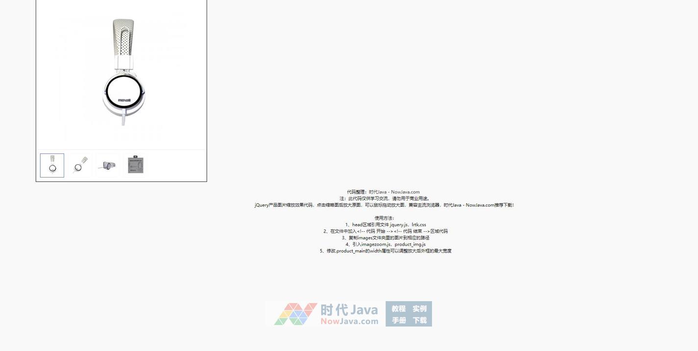 jQuery产品图片缩放效果代码,点击缩略图后放大原图,可以鼠标拖动放大图,兼容主流浏览器,推荐下载!