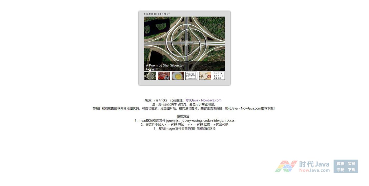 带指针和缩略图的横向焦点图代码,可自动播放,点击图片后,横向滚动图片。兼容主流浏览器,推荐下载!