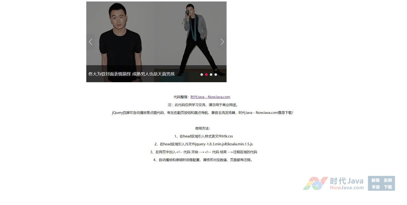jQuery四屏可自动播放焦点图代码,有左右翻页按钮和圆点导航,兼容主流浏览器,推荐下载!