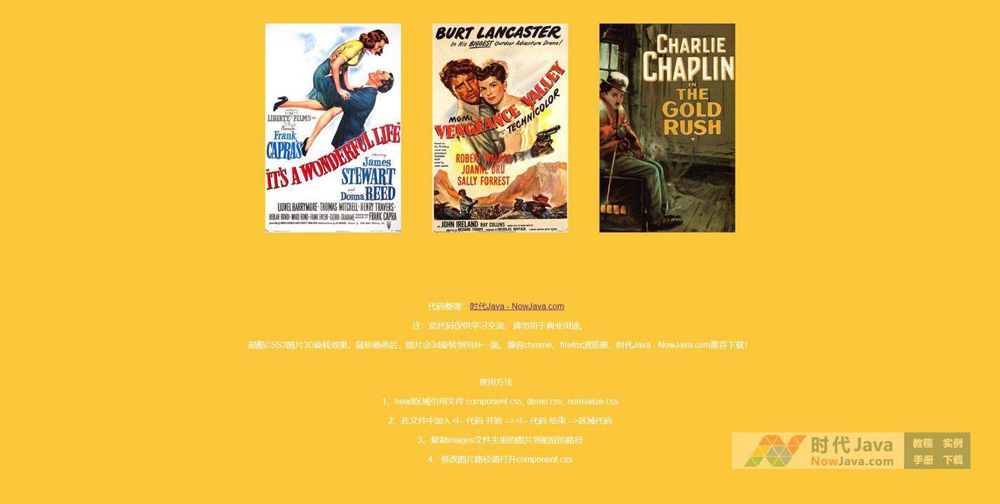 超酷CSS3图片3D旋转效果,鼠标悬停后,图片会3d旋转到另外一面。兼容chrome、firefox浏览器,推荐下载!