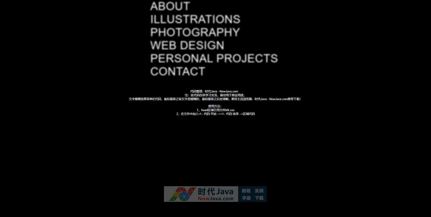 文字模糊效果菜单栏代码,鼠标悬停之前文字是模糊的,鼠标悬停之后变清晰。兼容主流浏览器,推荐下载!
