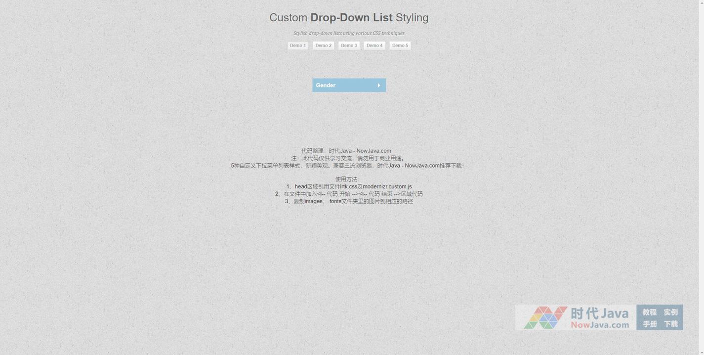 5种自定义下拉菜单列表样式,新颖美观。兼容主流浏览器,推荐下载!