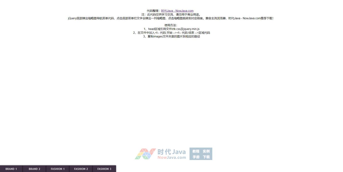 jQuery底部弹出缩略图导航菜单代码,点击底部菜单栏文字会弹出一列缩略图,点击缩略图跳转到对应链接。兼容主流浏览器,推荐下载!