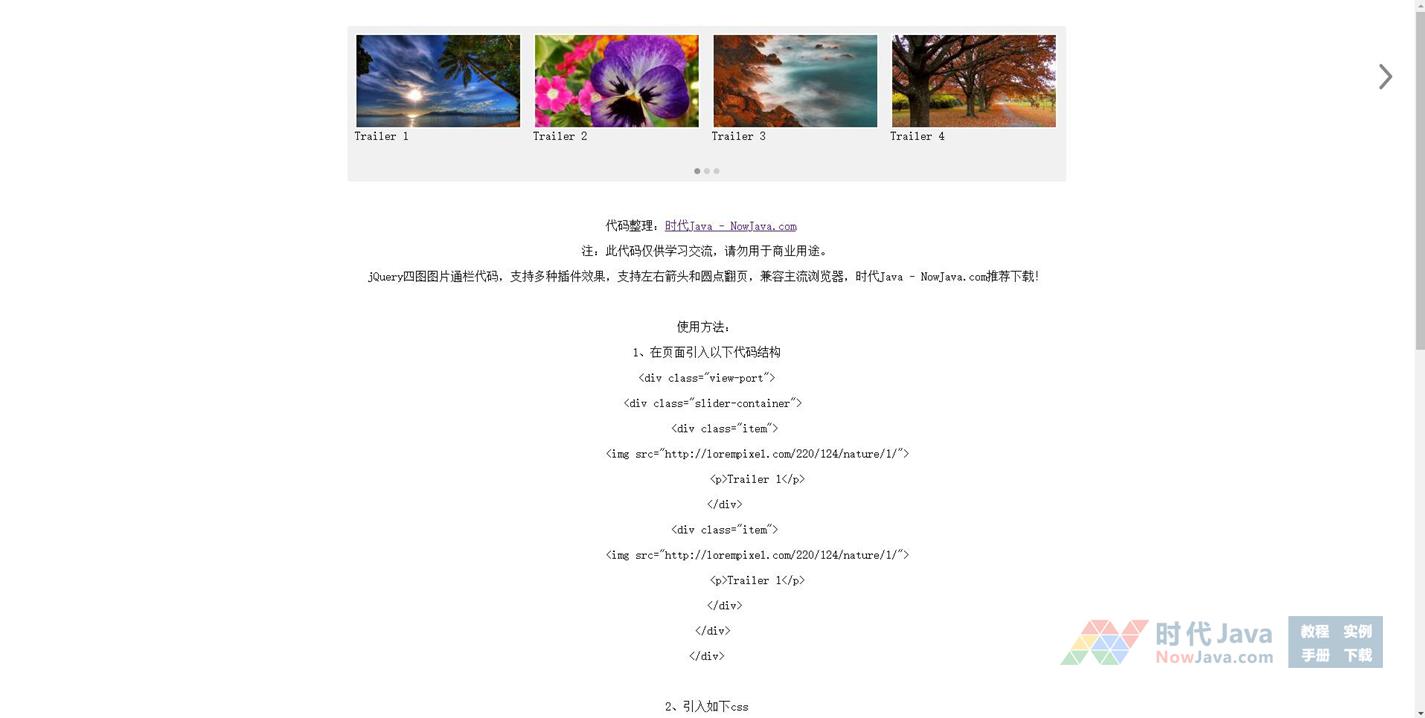 jQuery四图图片通栏代码,支持多种插件效果,支持左右箭头和圆点翻页,兼容主流浏览器,推荐下载!