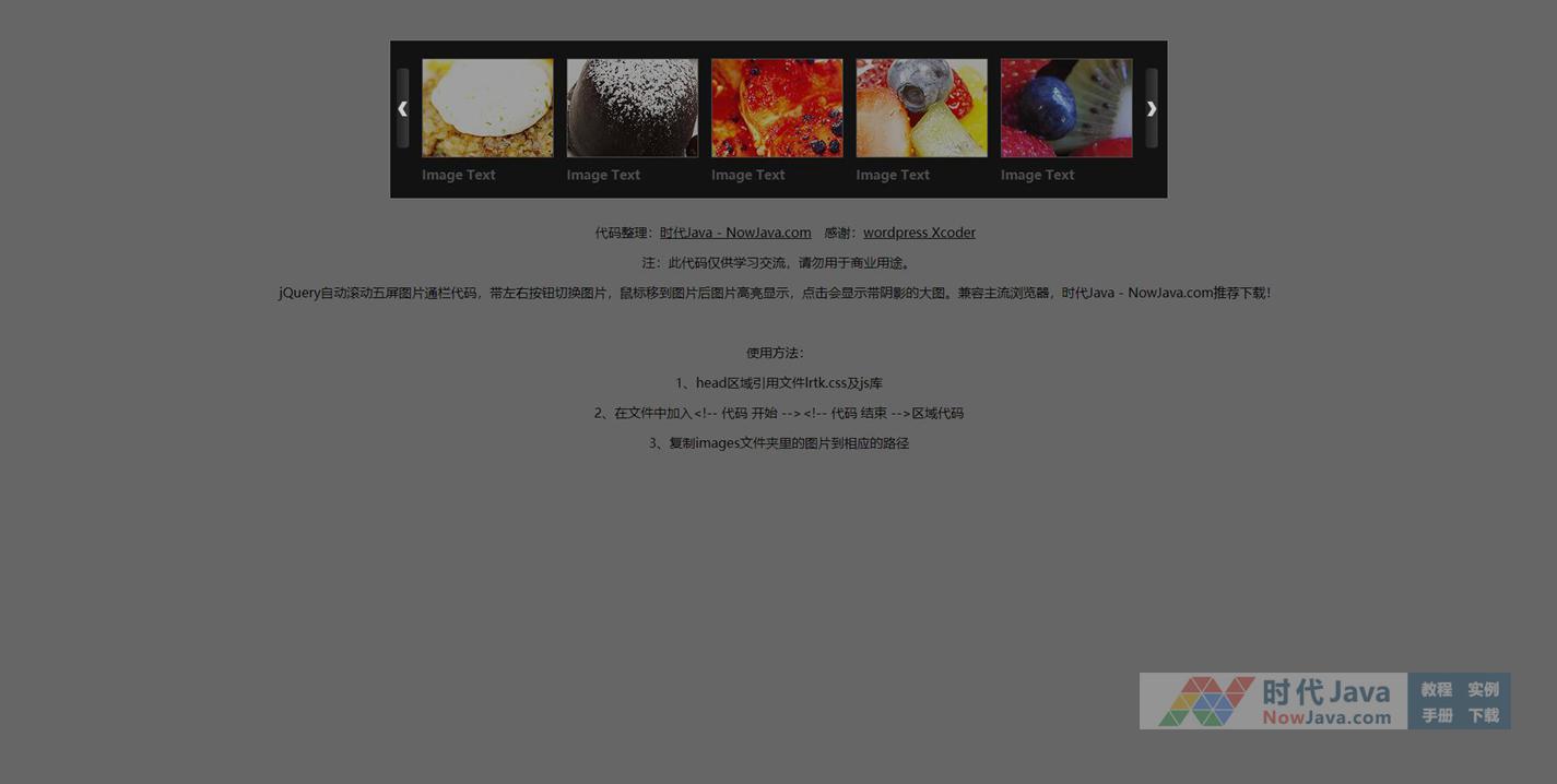 jQuery自动滚动五屏图片通栏代码,带左右按钮切换图片,鼠标移到图片后图片高亮显示,点击会显示带阴影的大图。兼容主流浏览器,推荐下载!