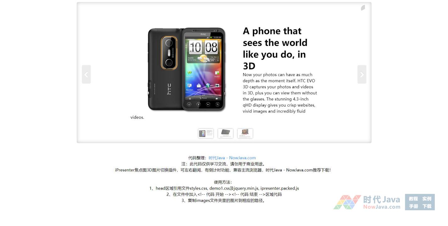 iPresenter焦点图3D图片切换插件,可左右翻阅,有倒计时功能,兼容主流浏览器,推荐下载!