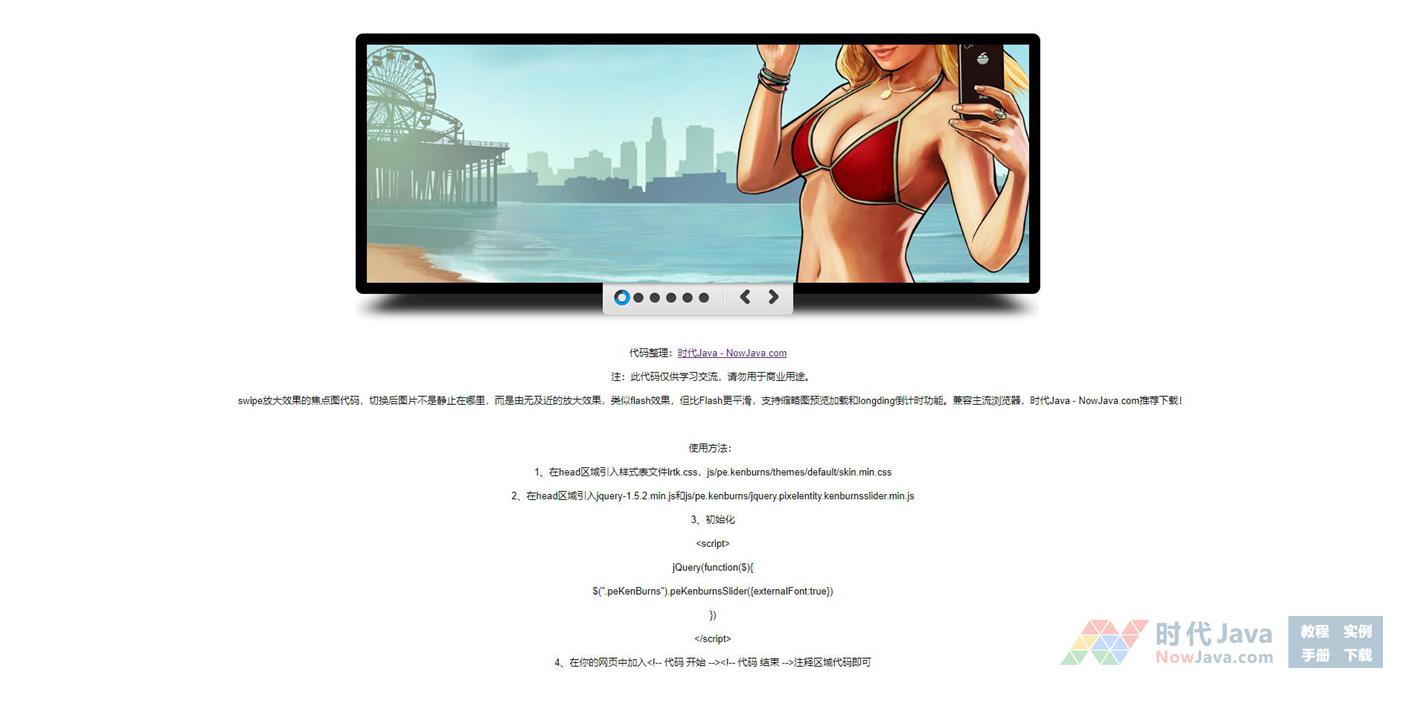 swipe放大效果的焦点图代码,切换后图片不是静止在哪里,而是由无及近的放大效果,类似flash效果,但比Flash更平滑,支持缩略图预览加载和longding倒计时功能。兼容主流浏览器,推荐下载!