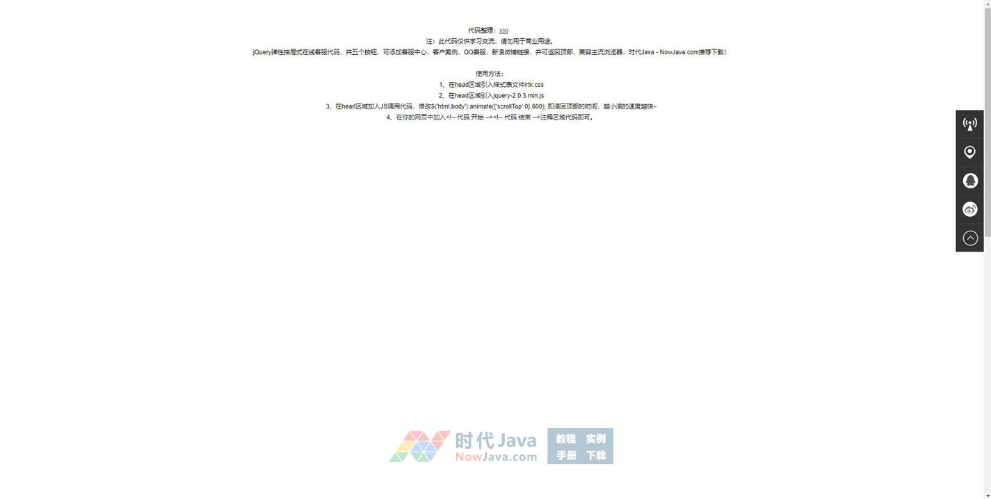 jQuery弹性抽屉式在线客服代码,共五个按钮,可添加客服中心,客户案例,QQ客服,新浪微博链接,并可返回顶部,兼容主流浏览器,推荐下载!