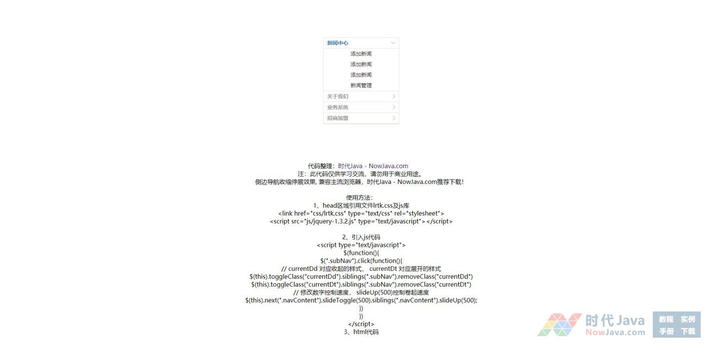 侧边导航收缩伸展效果, 兼容主流浏览器,推荐下载!