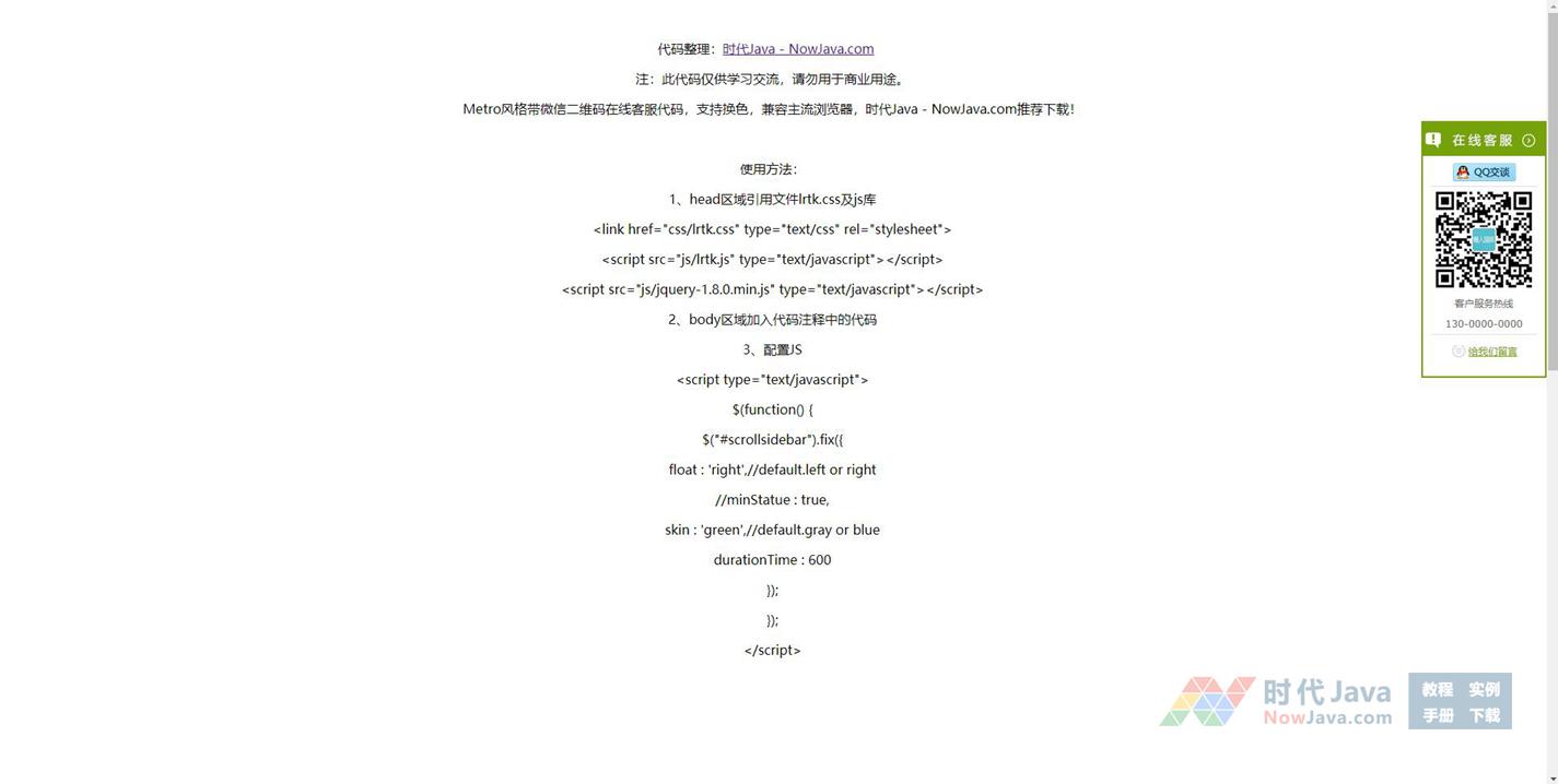 Metro风格带微信二维码在线客服代码,支持换色,兼容主流浏览器,推荐下载!