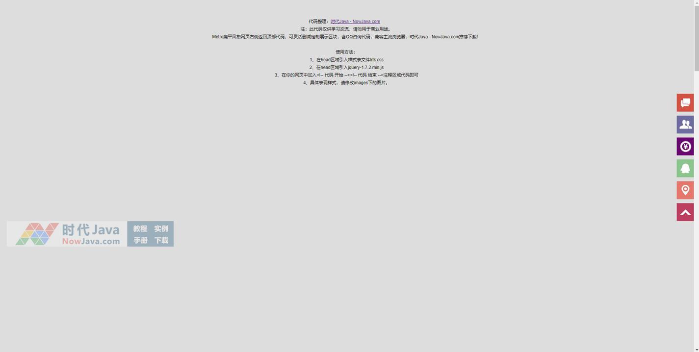 Metro扁平风格网页右侧返回顶部代码,可灵活删减定制展示区块,含QQ咨询代码,兼容主流浏览器,推荐下载!