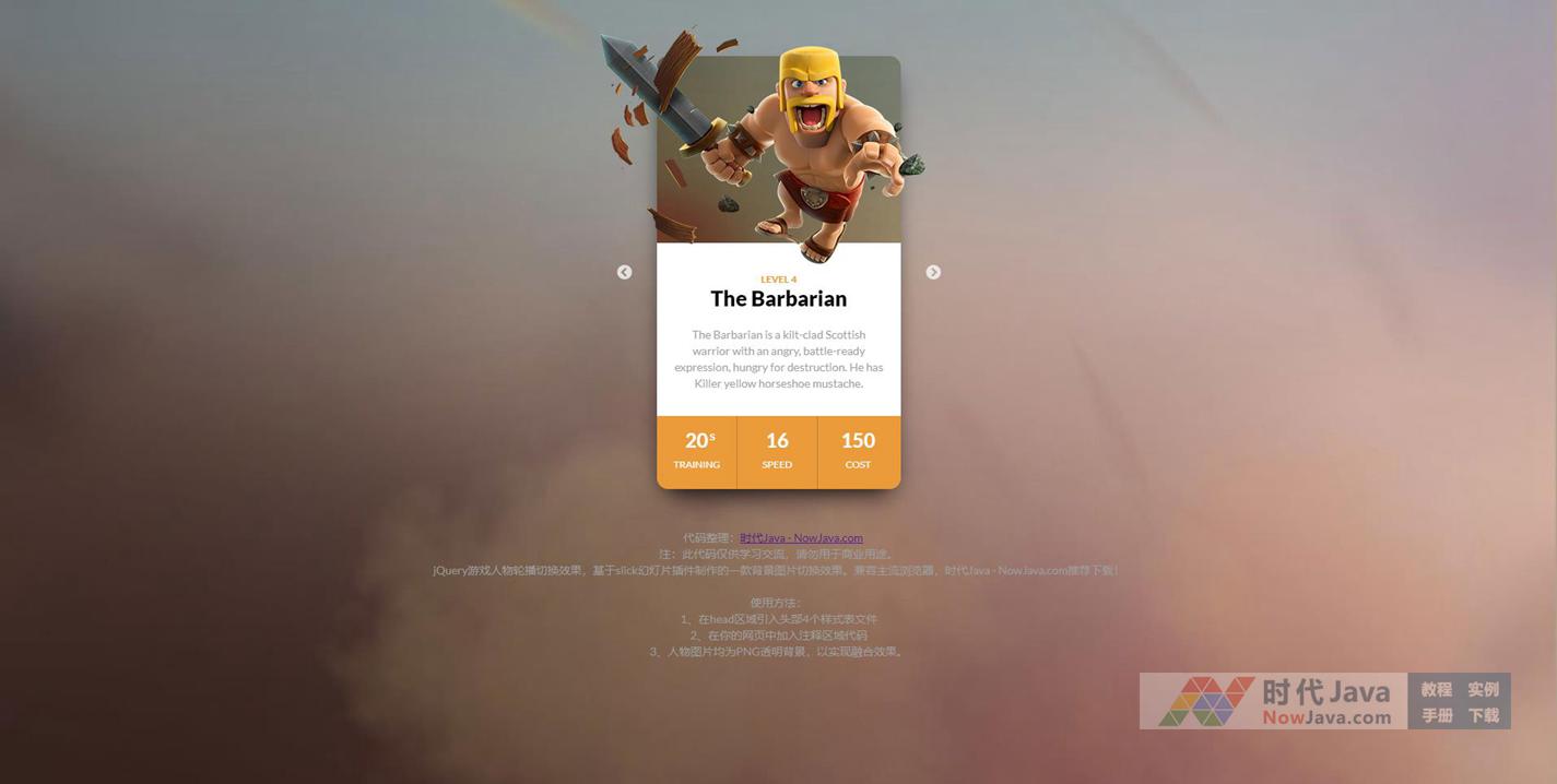 jQuery游戏人物轮播切换效果,基于slick幻灯片插件制作的一款背景图片切换效果。兼容主流浏览器,推荐下载!
