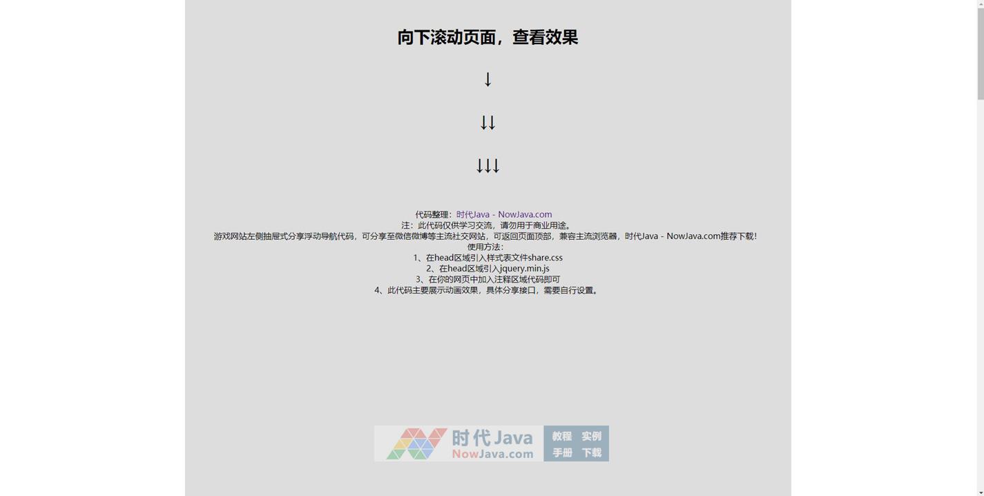 游戏网站左侧抽屉式分享浮动导航代码,可分享至微信微博等主流社交网站,可返回页面顶部,兼容主流浏览器,推荐下载!