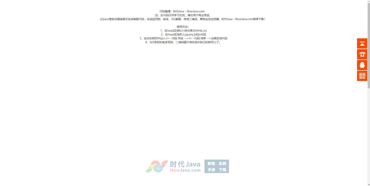jQuery橙色右侧抽屉式在线客服代码,含返回顶部,电话,QQ客服,微信二维码,兼容主流浏览器,推荐下载!