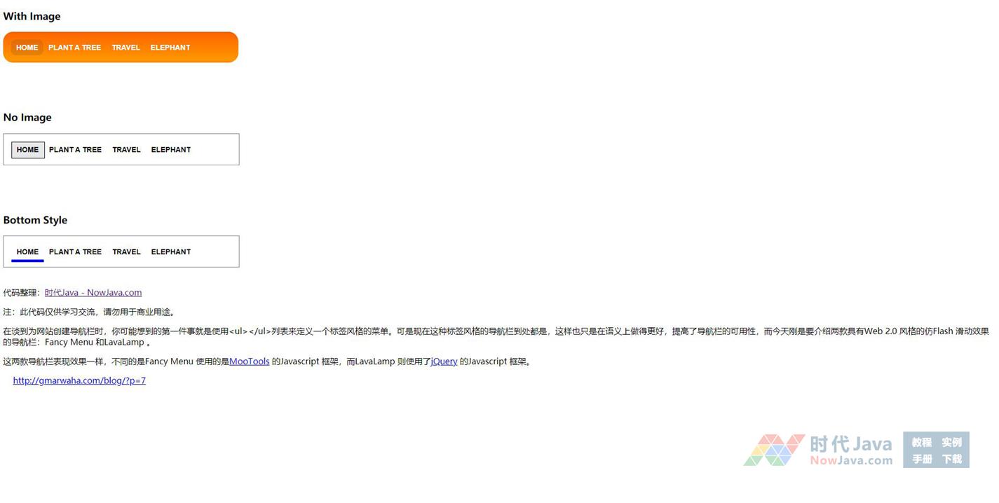 这两款导航栏表现效果一样,不同的是Fancy Menu 使用的是MooTools 的Javascript 框架,而LavaLamp 则使用了jQuery 的Javascript 框架。