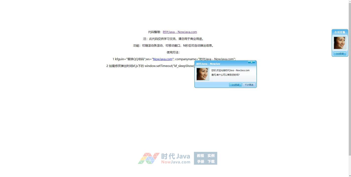 2 如需修改弹出时间kf.js下的 window.setTimeout("kf_sleepShow()",2000); 换算单位为2000即等于2秒