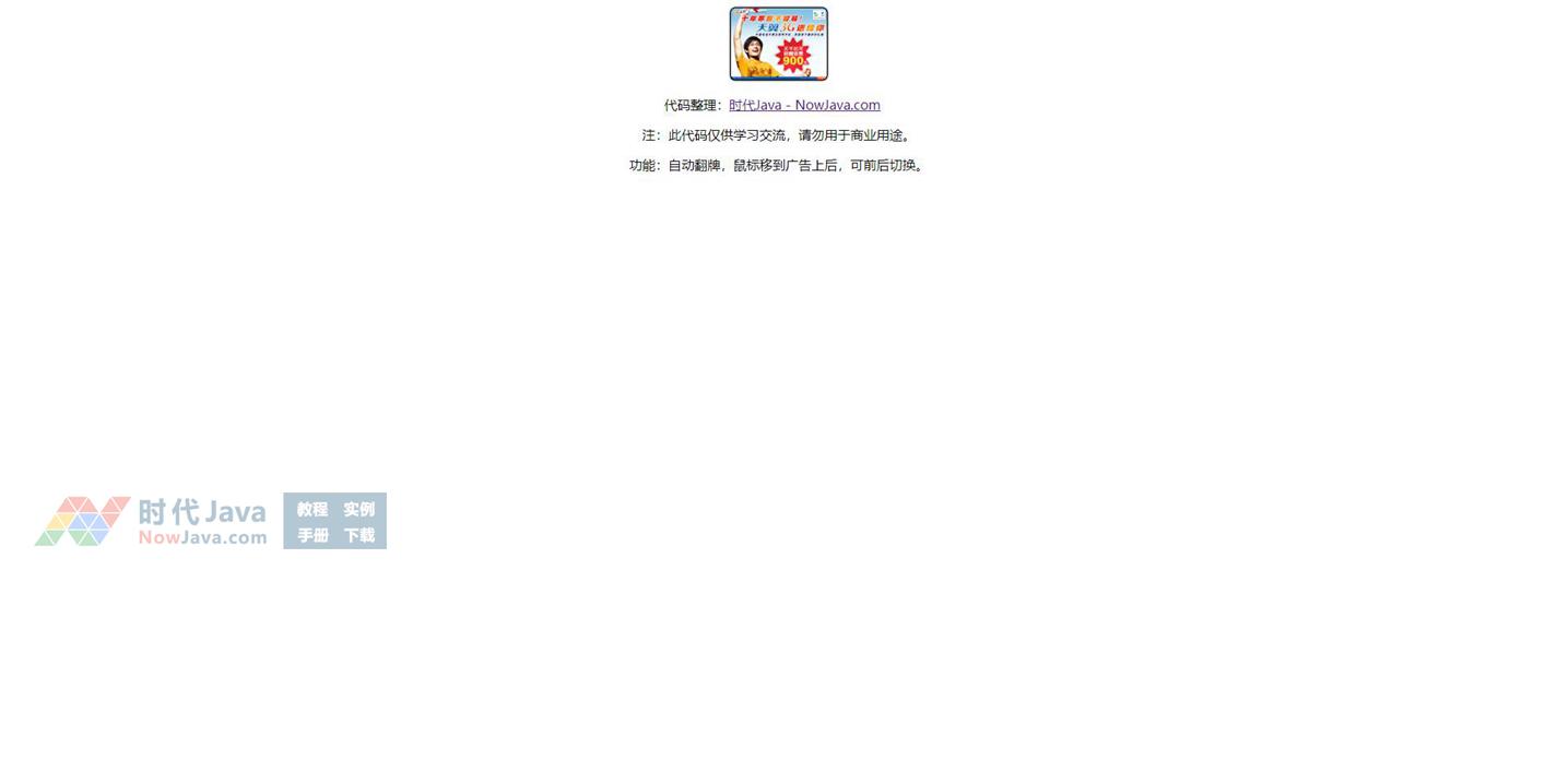 功能:自动翻牌,鼠标移到广告上后,可前后切换。