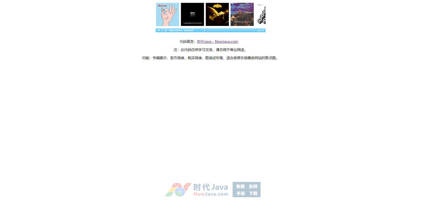 功能:专辑展示,官方链接,购买链接,歌曲试听等,适合做音乐销售类网站的焦点图。