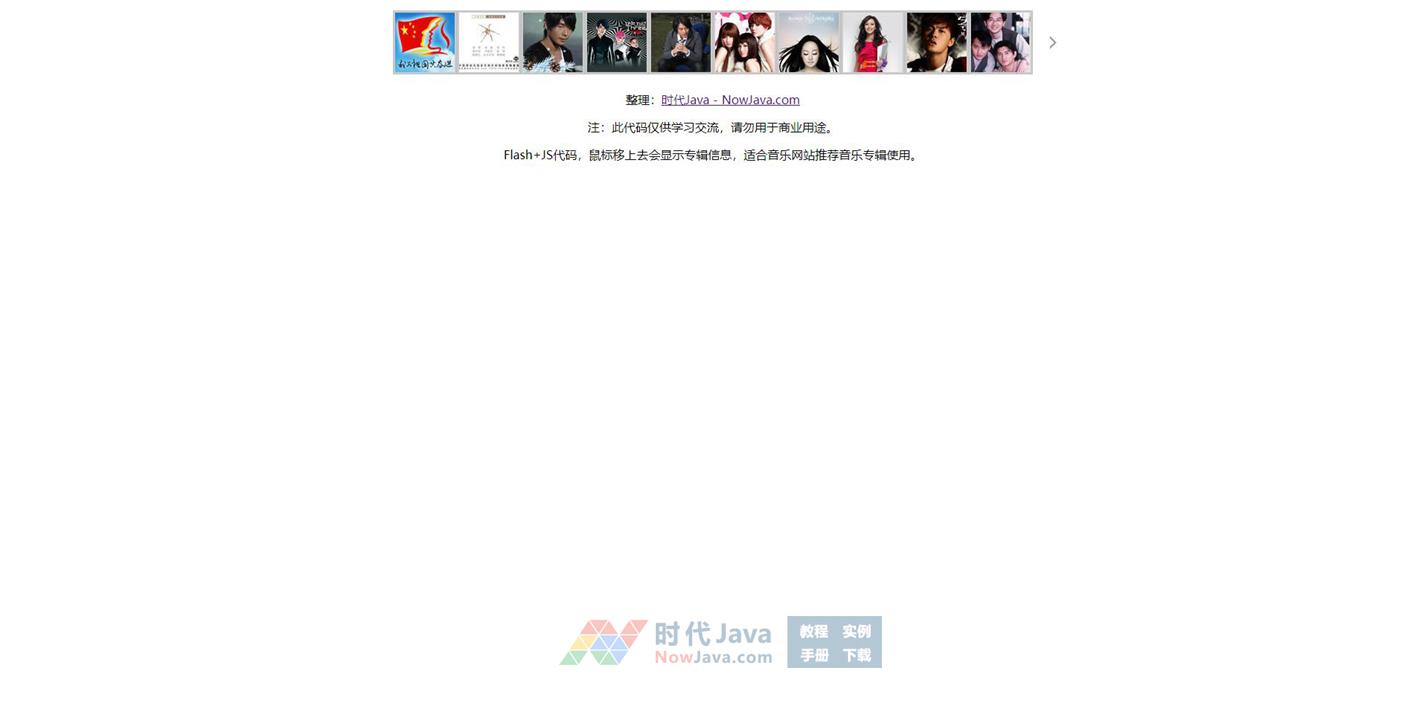 Flash+JS代码,鼠标移上去会显示专辑信息,适合音乐网站推荐音乐专辑使用。