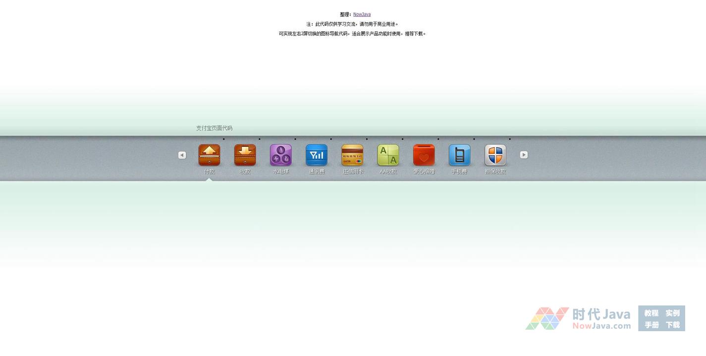 可实现左右2屏切换的图标导航代码,适合展示产品功能时使用,推荐下载。