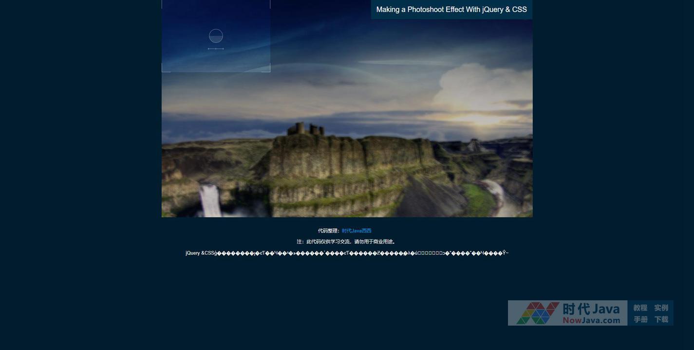 jQuery &CSS模拟相机拍照的图片特效,刷新会随机显示背静图片,鼠标移到景物局部位置后,按下鼠标就会“拍下”,效果很酷哦~
