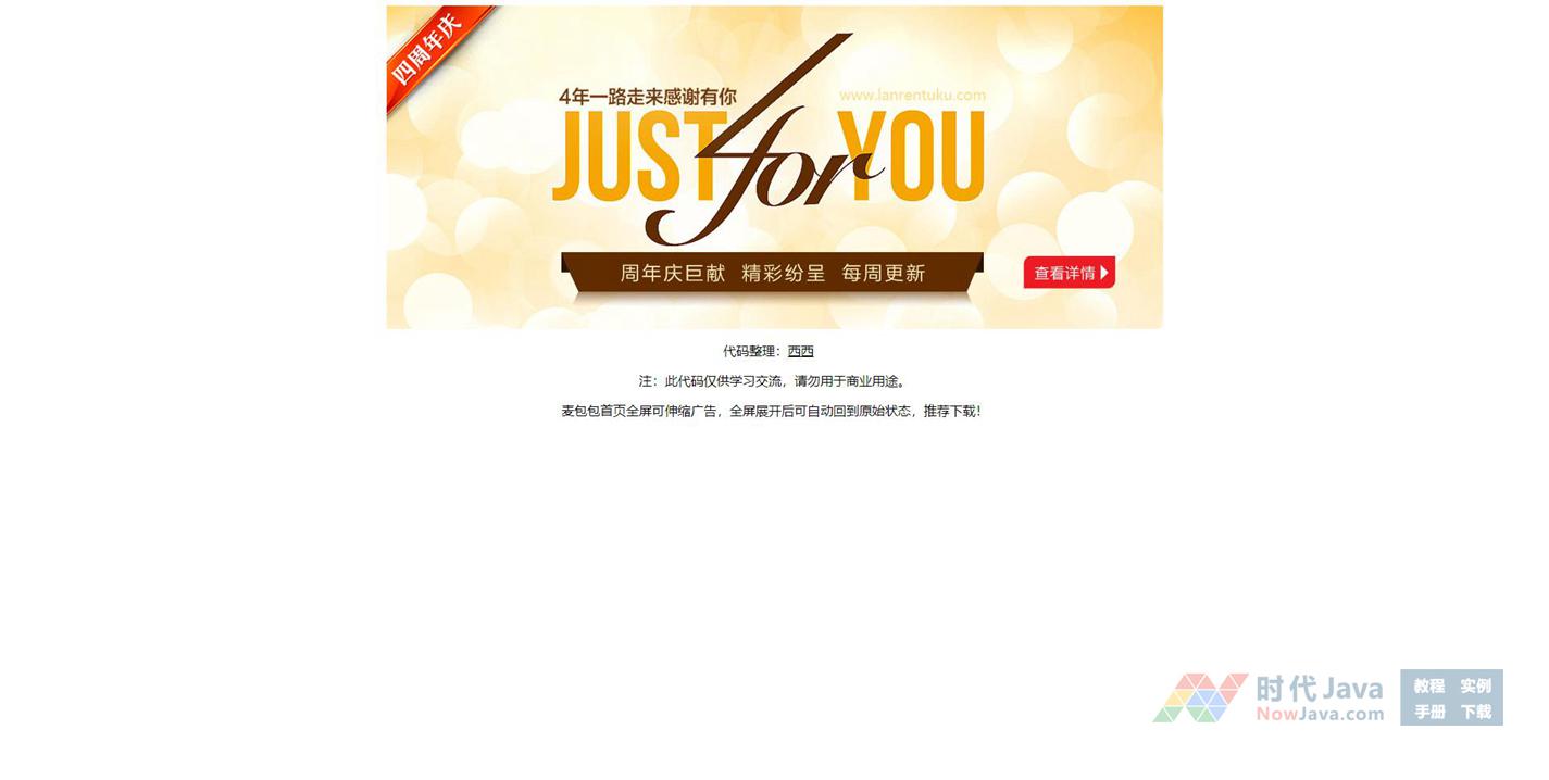 麦包包首页全屏可伸缩广告,全屏展开后可自动回到原始状态,推荐下载!