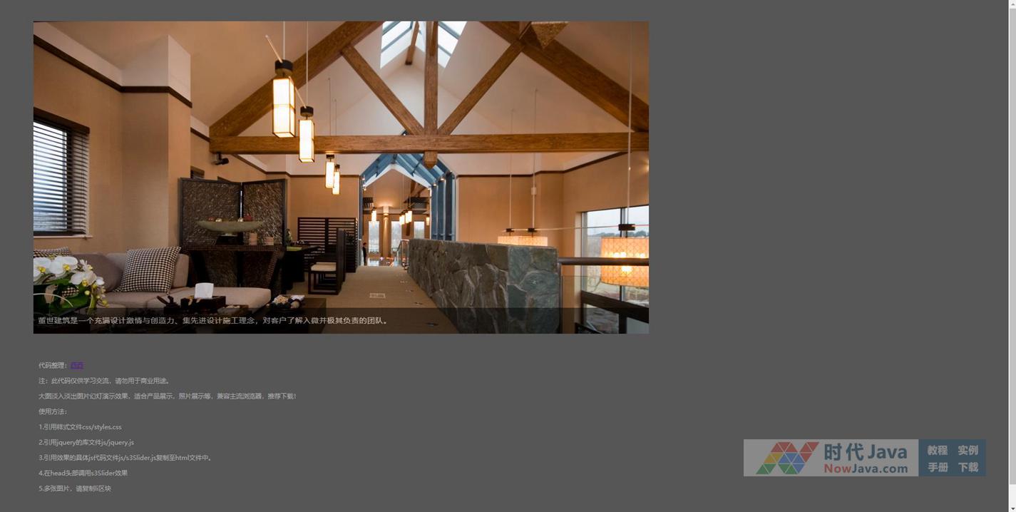 3.引用效果的具体js代码文件js/s3Slider.js复制至html文件中。