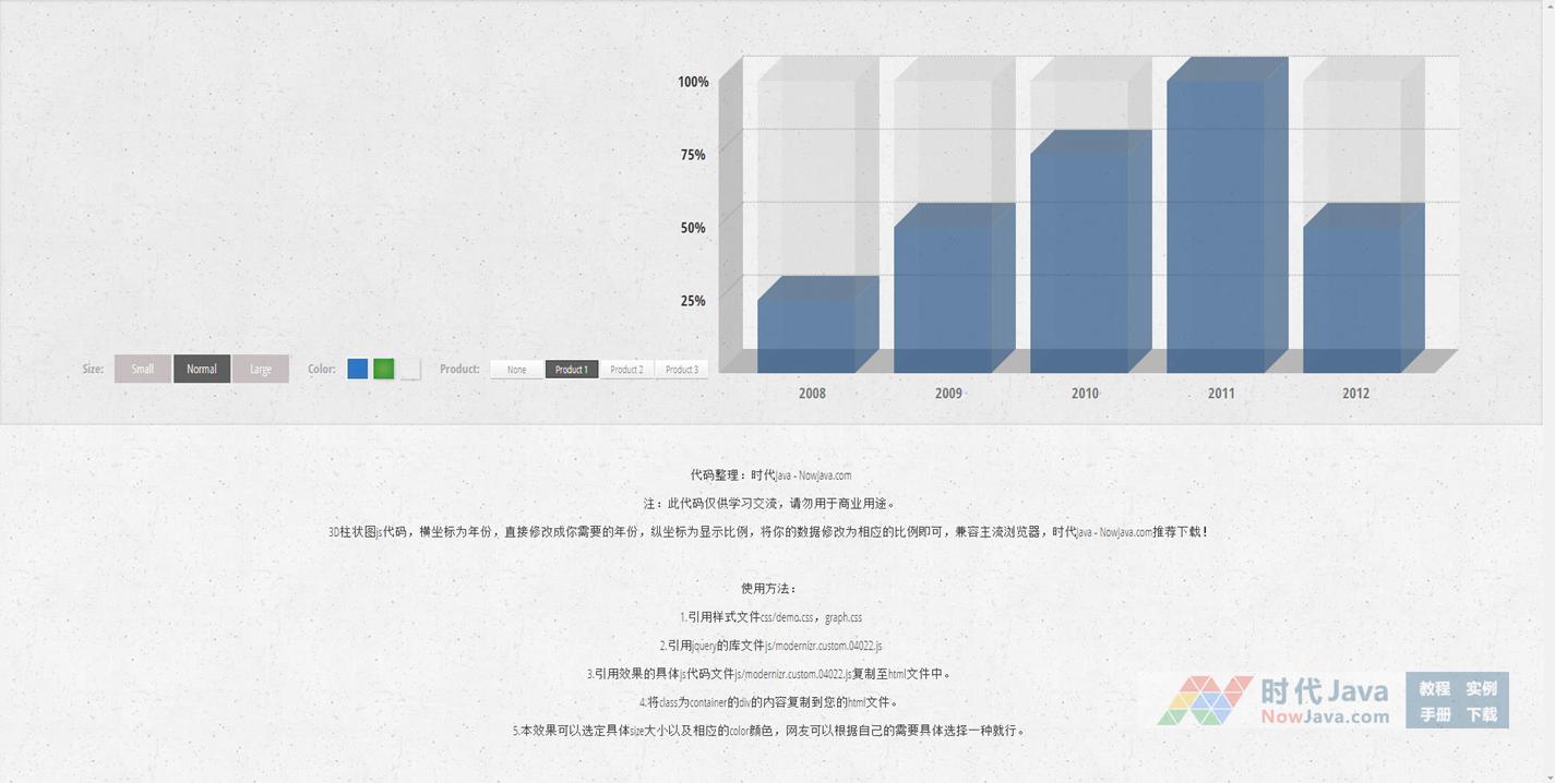 3D柱状图js代码,横坐标为年份,直接修改成你需要的年份,纵坐标为显示比例,将你的数据修改为相应的比例即可,兼容主流浏览器,推荐下载!