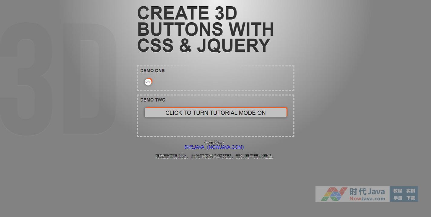 纯代码实现的3D按钮效果,不需要任何图片,鼠标点击按钮带有动态效果,经测试效果非常华丽漂亮,感兴趣的你可不要错过了哈