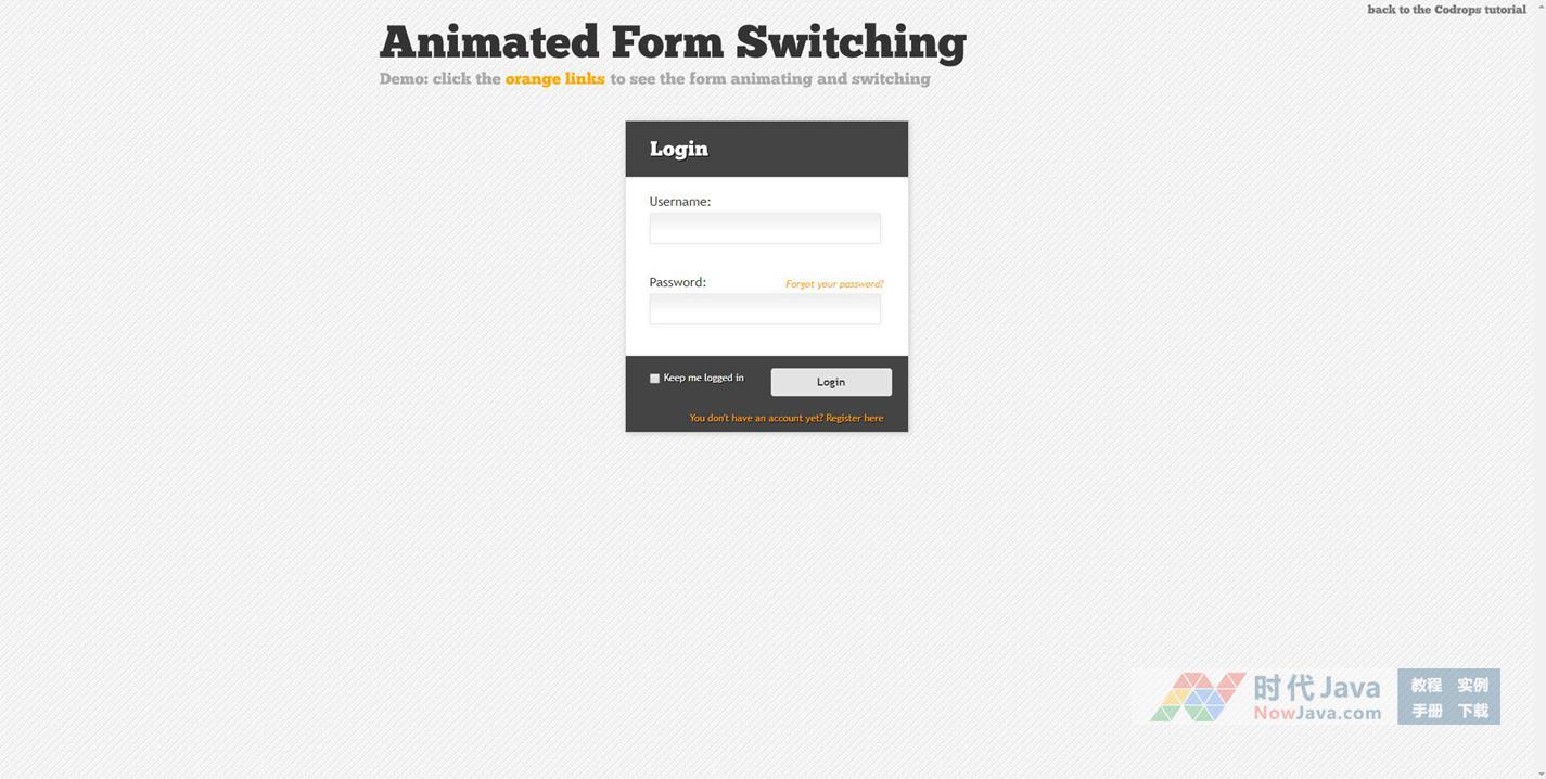 动画渐变的表单切换功能jquery版,点击表单的底部,神奇的表单切换功能就显示了,类似多步表单的效果,介似乎这一种更让人有新颖的感觉,截图看不出动画效果,你最好下载本源码浏览查看。